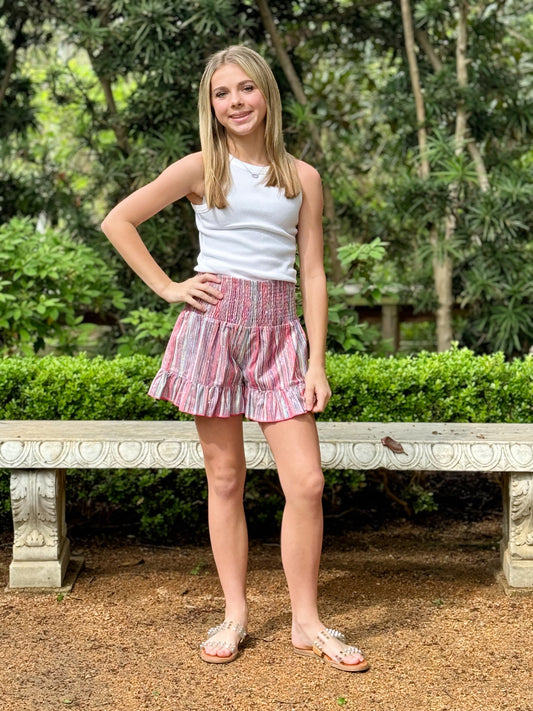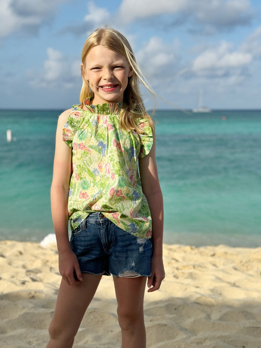 Caitlyn Flamingo Print Smocked Ruffled Dress
