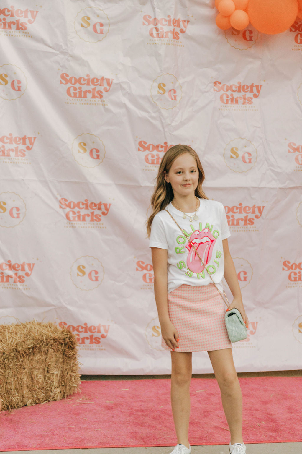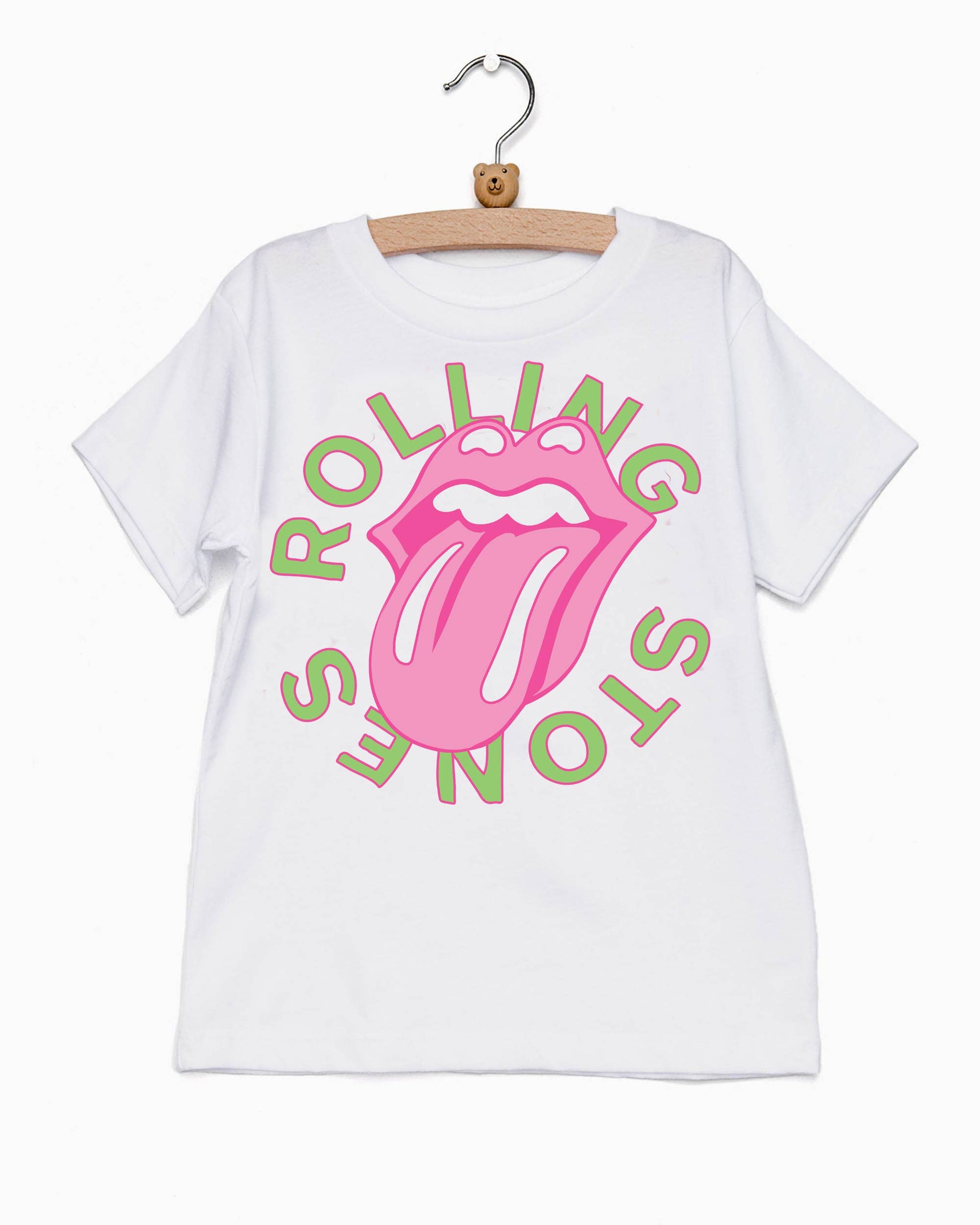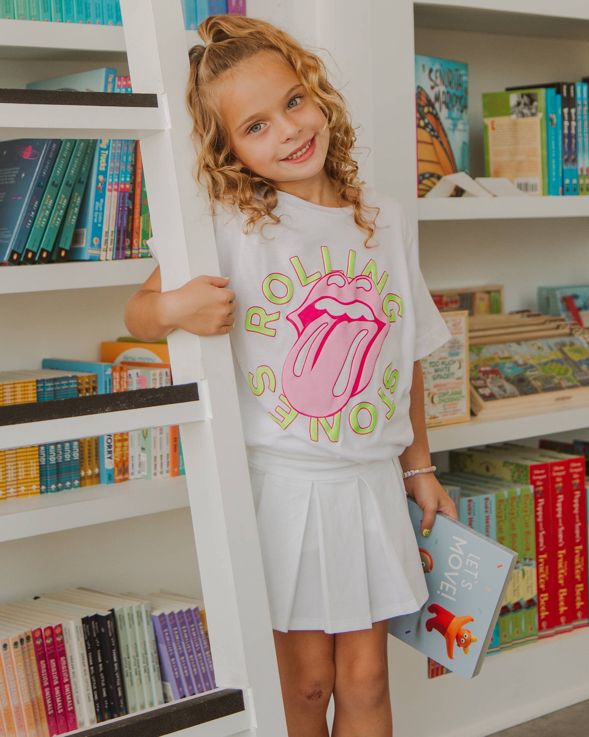 Look trendy and cute in our Rolling Stones Neon Puff Classic White Tee. Pair it with something more classic like our pink houndstooth skirt for a curated stylish look!