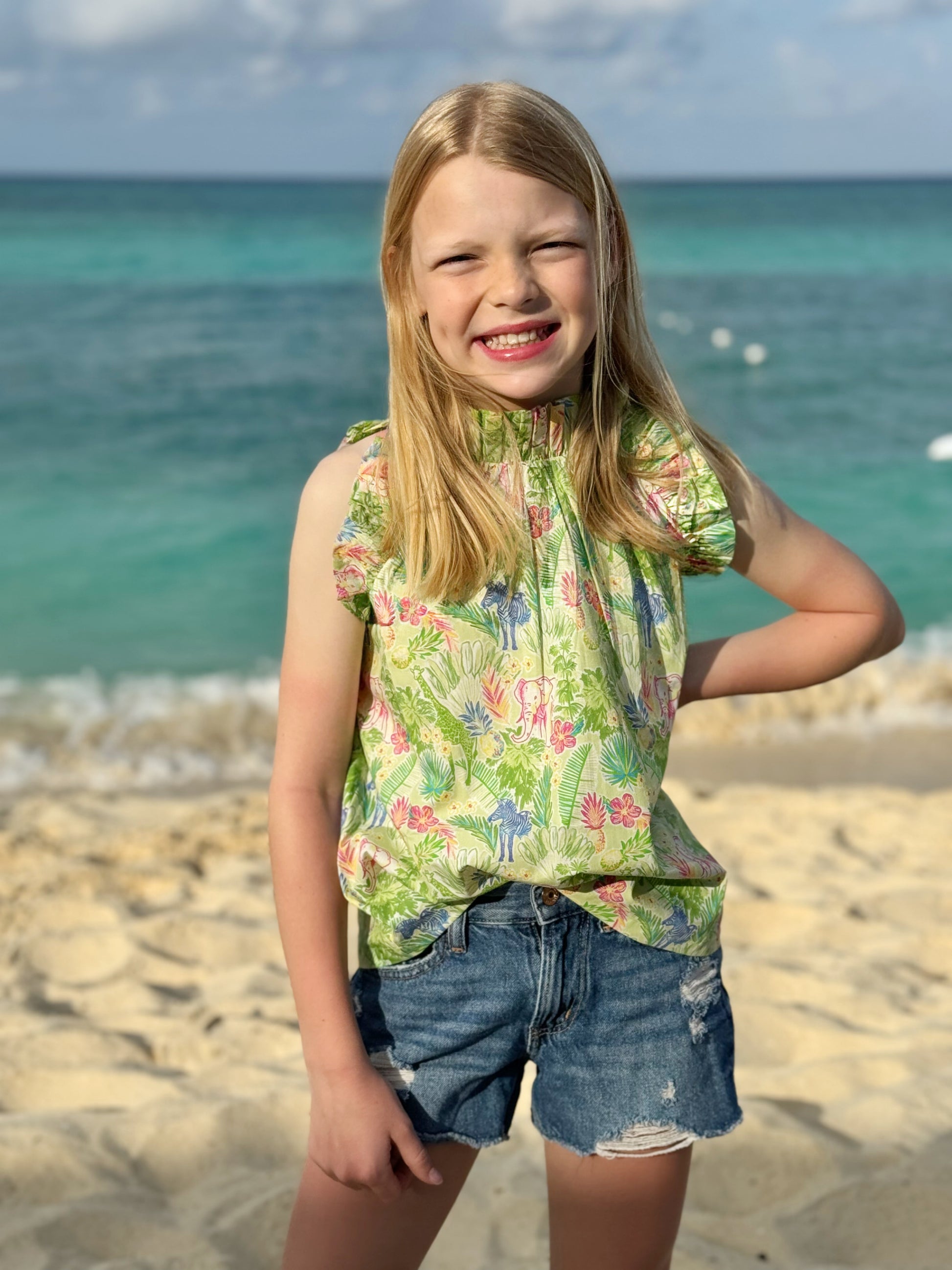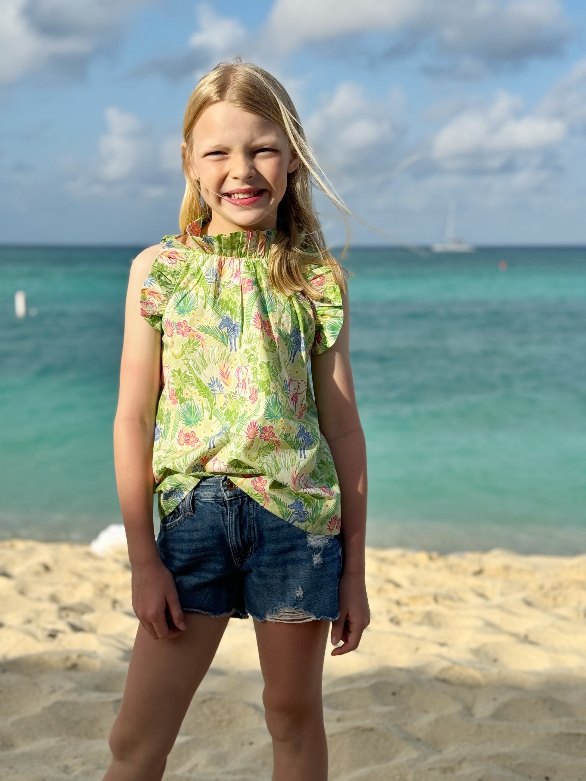 Add a little frill to their day with this soft cotton top. Ruffled detailing around the collar and sleeves makes it extra special. Ideal for pairing with multiple bottoms, this piece is the perfect go-to item for every little girl's wardrobe. * Material: 100% luxury cotton * Button Back * Care: Machine wash cold, tumble dry without heat to prevent shrinking