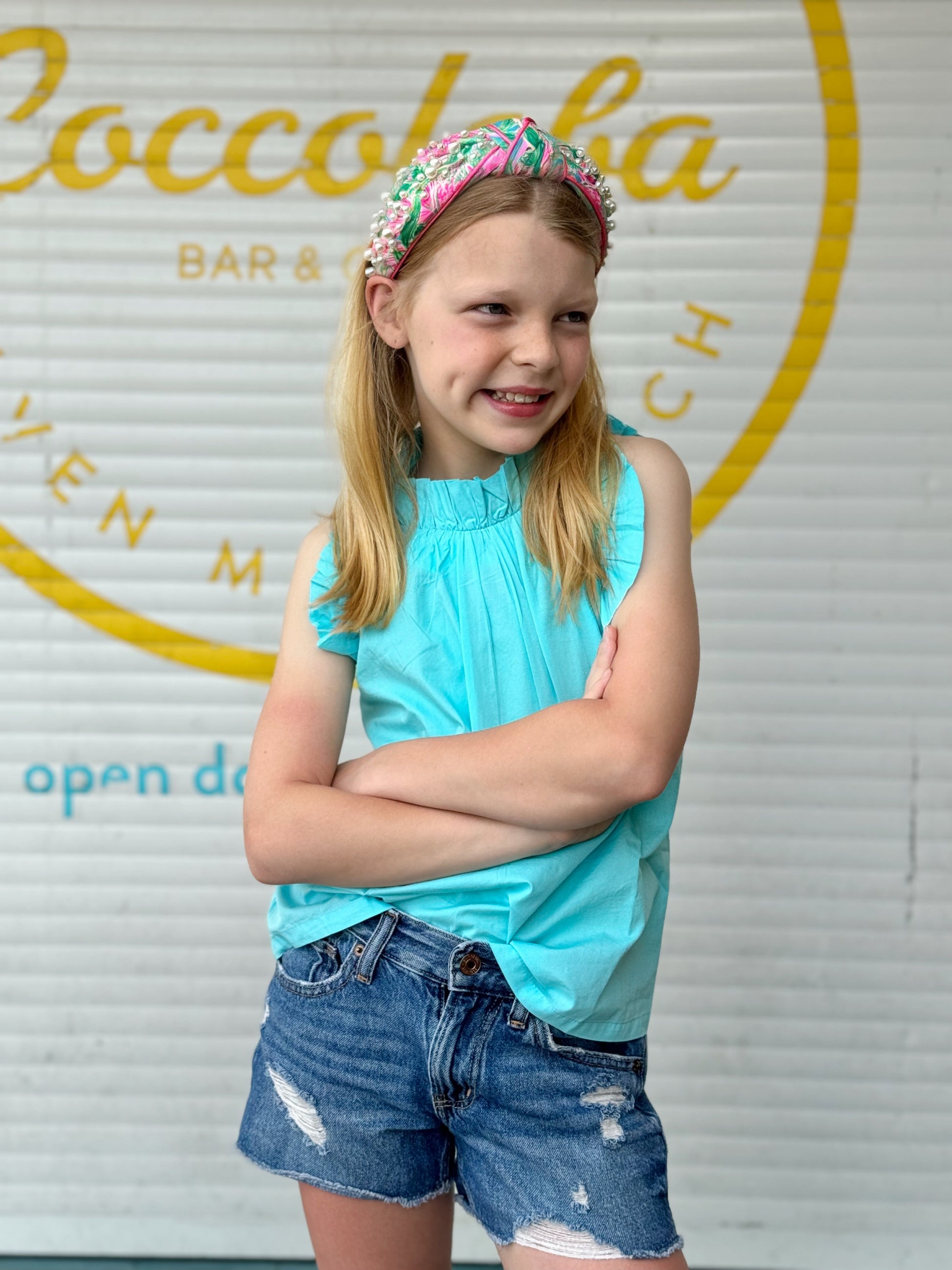 Add a little frill to their day with this soft cotton top. Ruffled detailing around the collar and sleeves makes it extra special. Ideal for pairing with multiple bottoms. This piece is the perfect go-to item for every little girl's wardrobe. * Material: 100% luxury cotton * Button Back * Care: Machine wash cold, tumble dry without heat to prevent shrinking