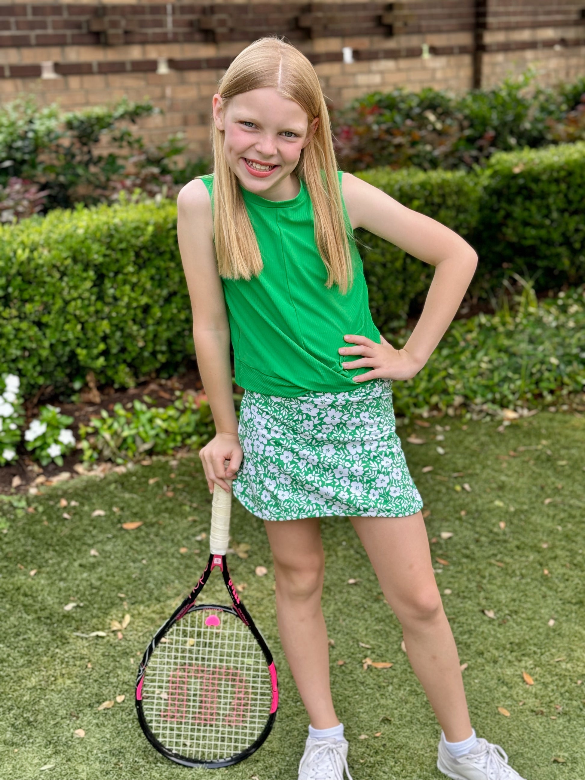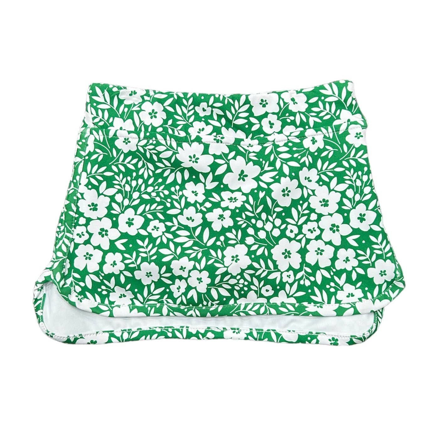 Stand out in this adorable emerald floral tennis skirt. Perfect for a day out on the courts or a casual weekend look.