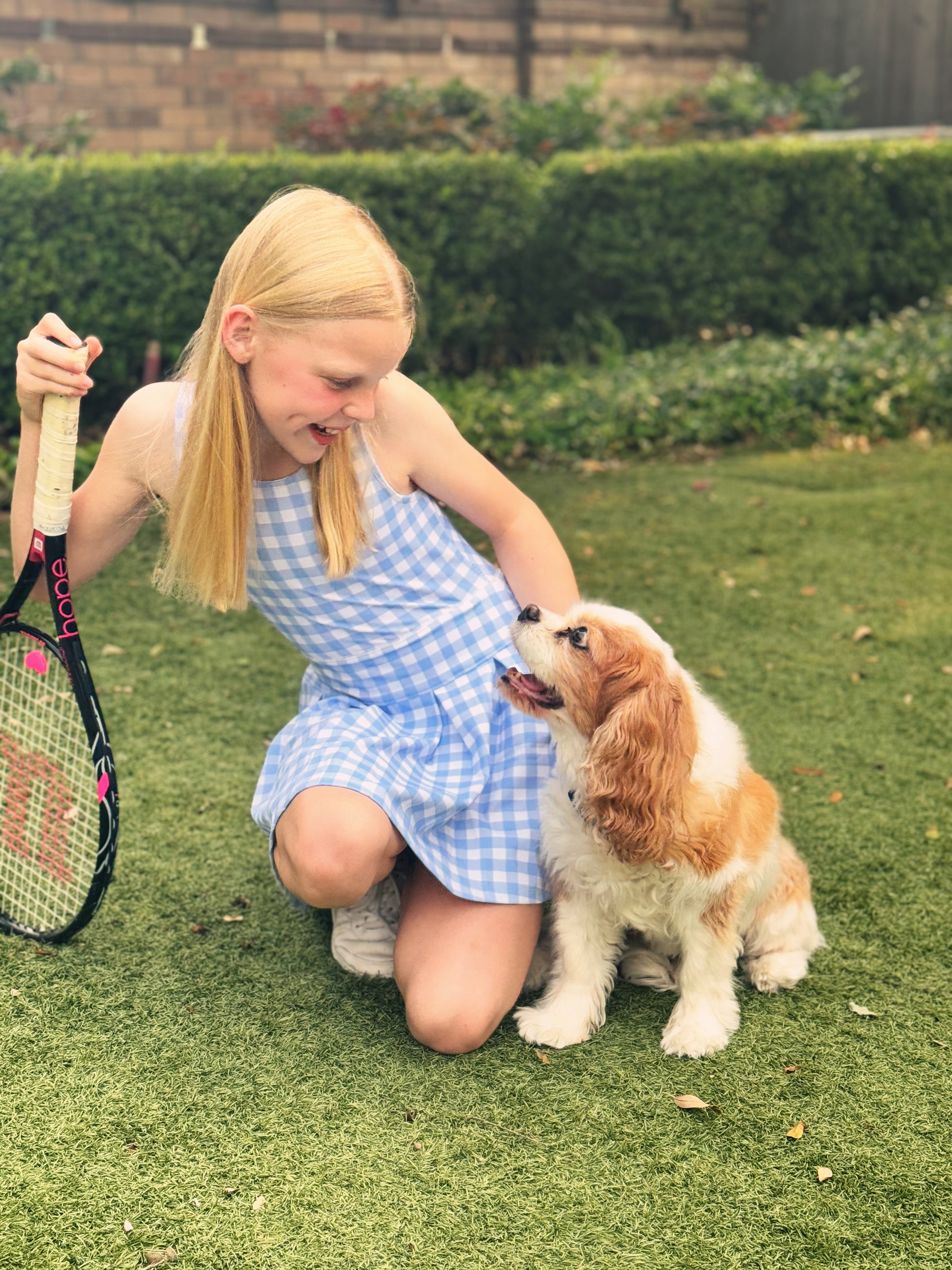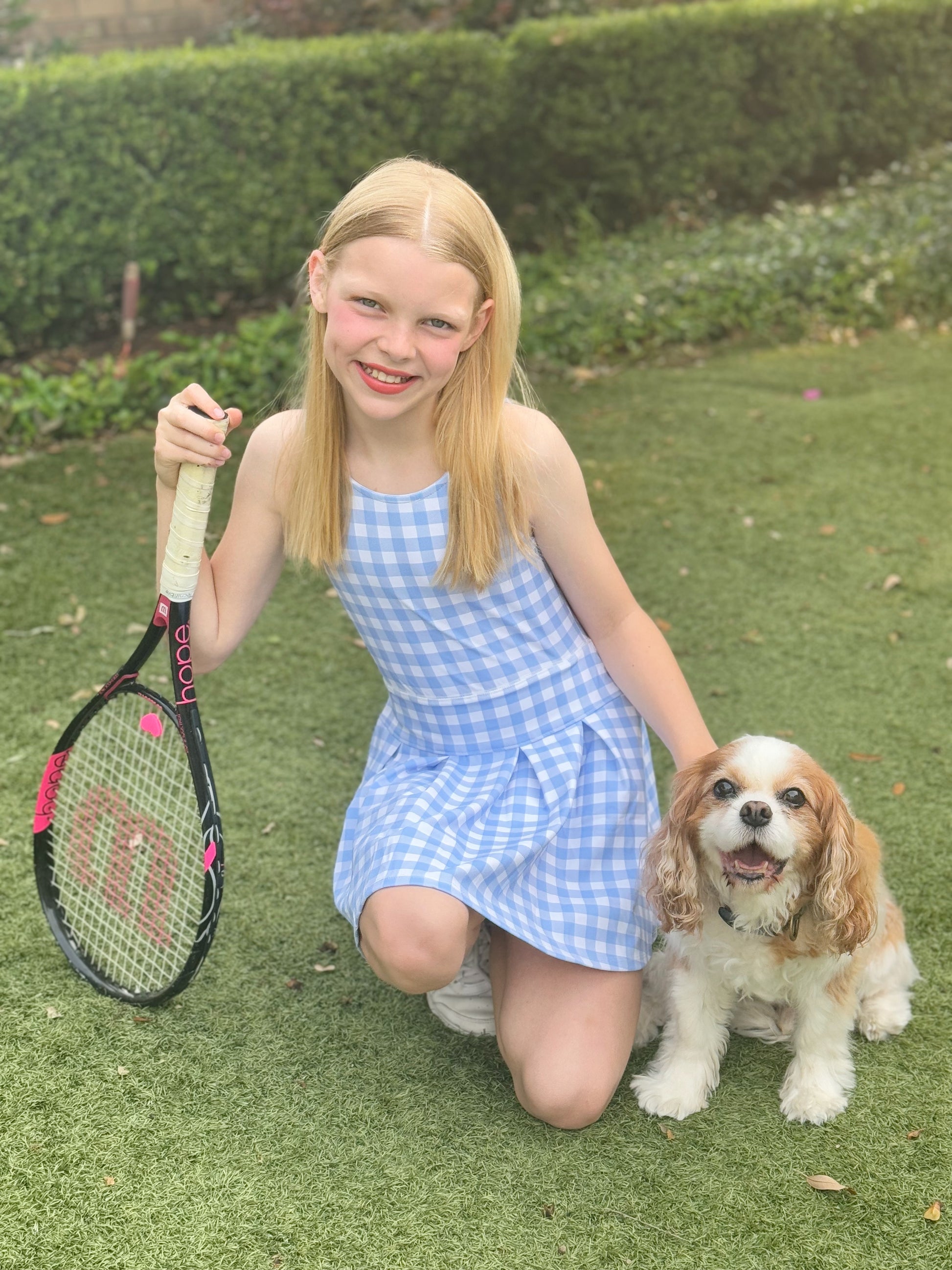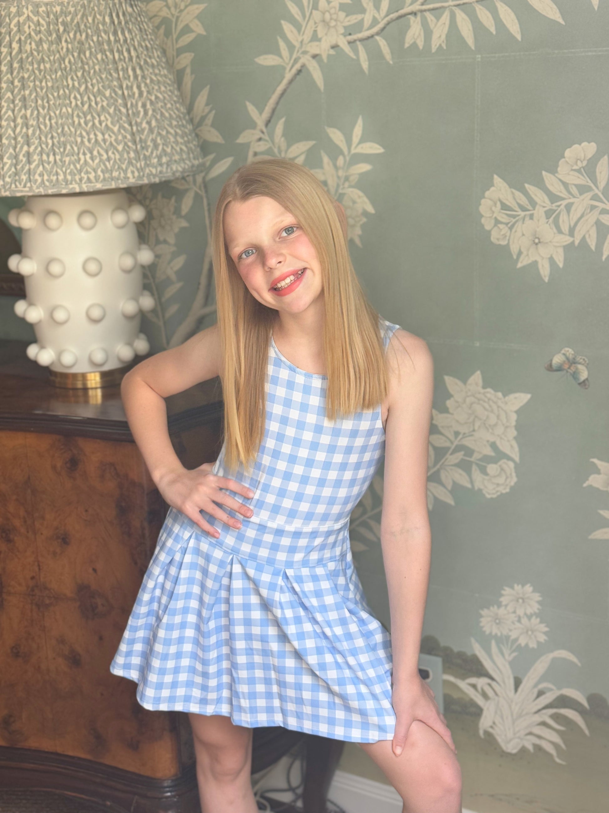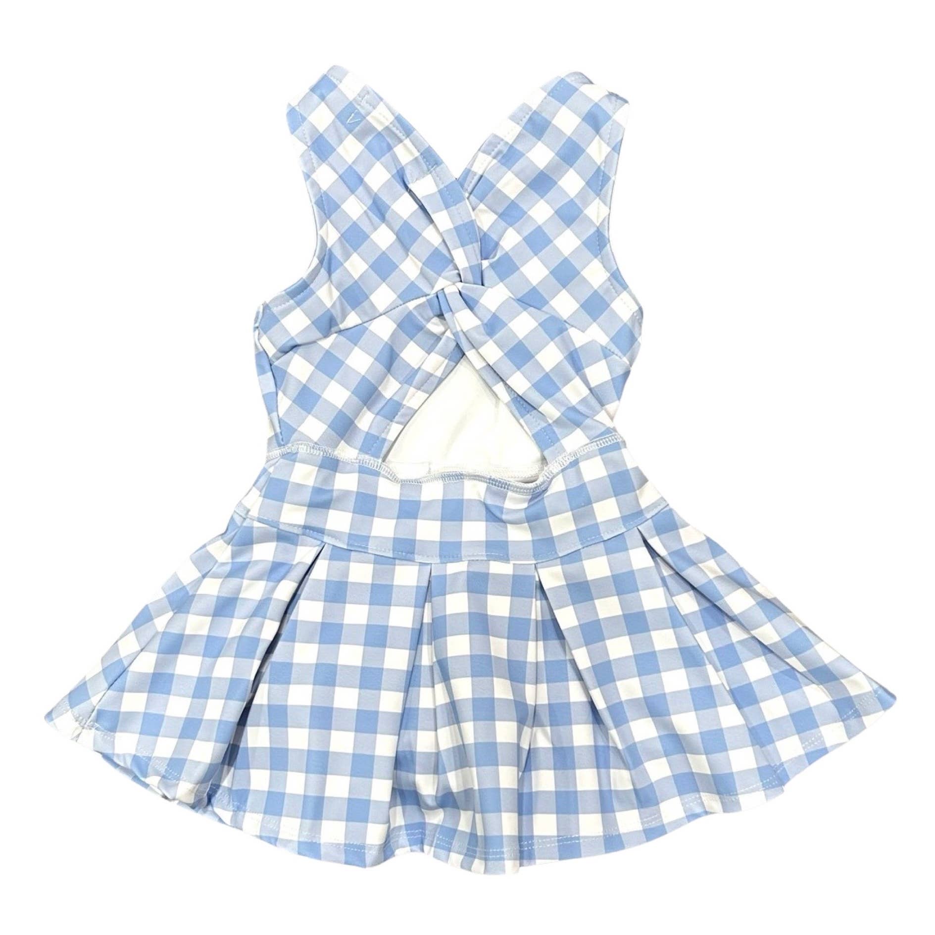 Serve up style with this blue gingham pleated tennis dress. Perfect for active little ones, this tennis dress will have you looking chic on and off the court.