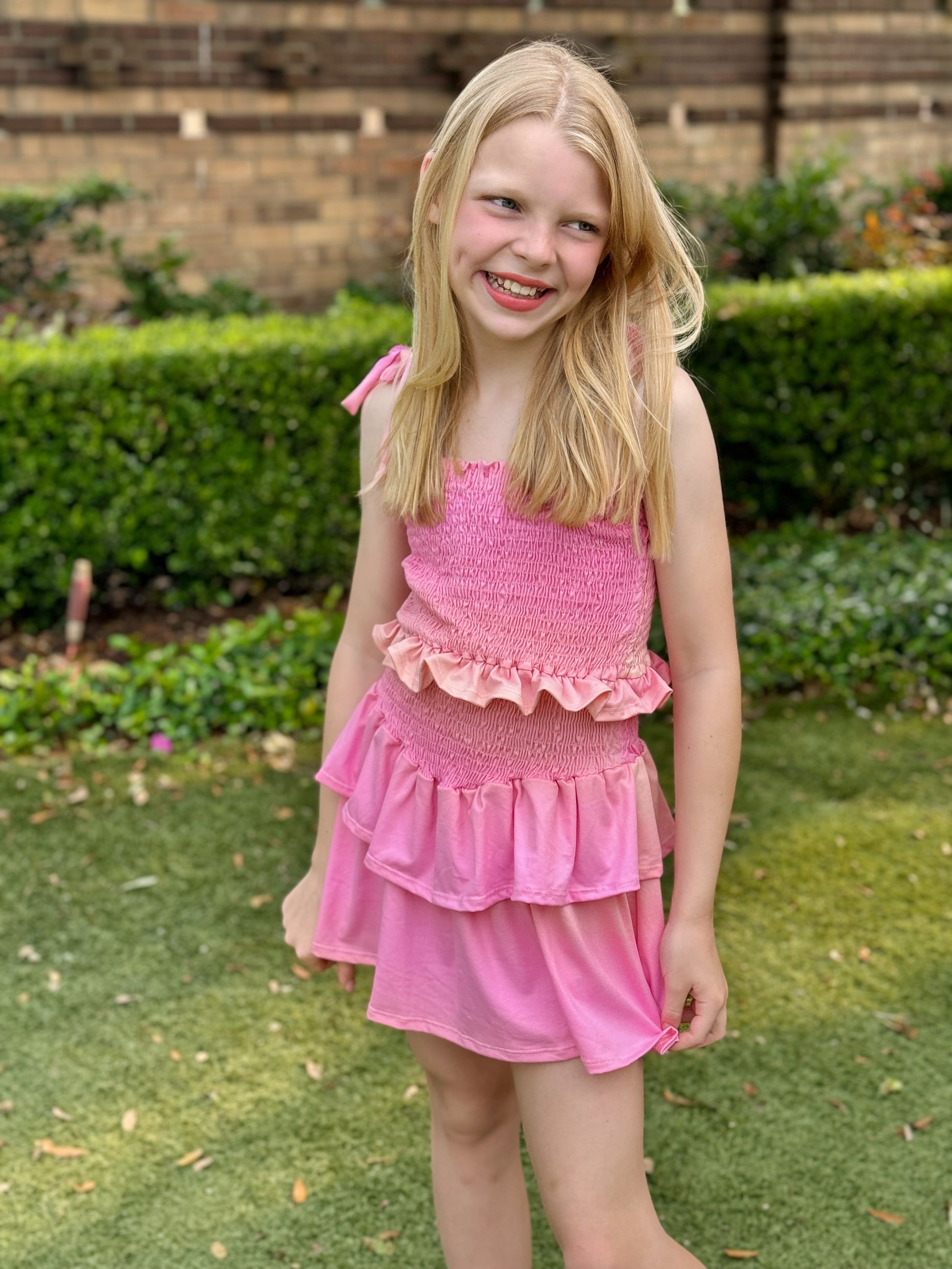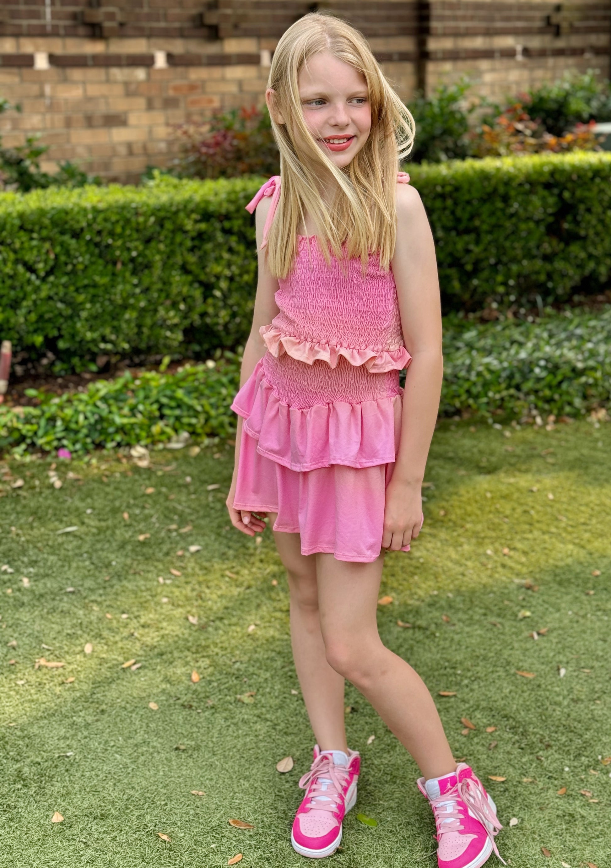 Our Pink Ombre Smocked Dress has Adjustable Straps and is perfect paired with your Nike high tops or favorite sandals!